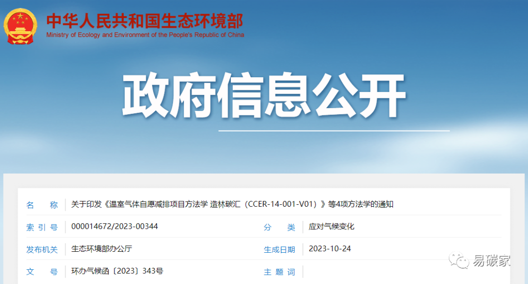 为规范全国温室气体自愿减排项目设计、实施、审定和减排量核算、核查工作,我部根据《温室气体自愿减排交易管理办法(试行)》制定了《温室气体自愿减排项目方法学 造林碳汇(CCER-14-001-V01)》《温室气体自愿减排项目方法学 并网光热发电(CCER-01-001-V01)》《温室气体自愿减排项目方法学 并网海上风力发电(CCER-01-002-V01)》《温室气体自愿减排项目方法学 红树林营造(CCER-14-002-V01)》。现予公布,自印发之日起施行。